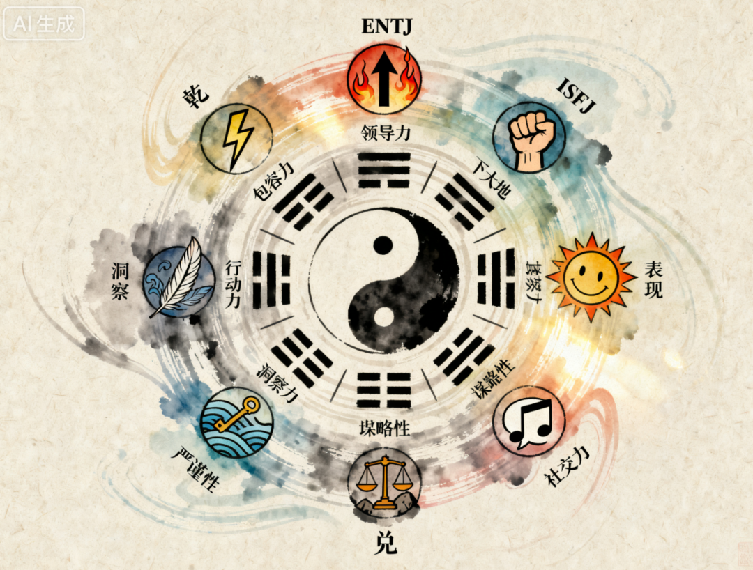 你以为“乾卦”只是天行健?其实它是典型的高自律领袖型人格——目标感强、自我驱动、永远在攀登,但也容易 burn out。